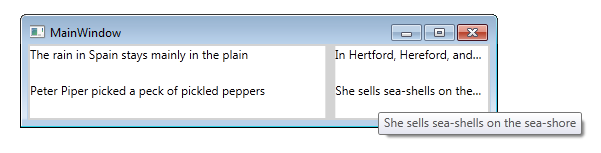 To briefly recap, my solution for automatically adding tooltips to trimmed text relies on the slightly odd behaviour of the TextBlock where its ActualWidth is reported as the width of the text without trimming: