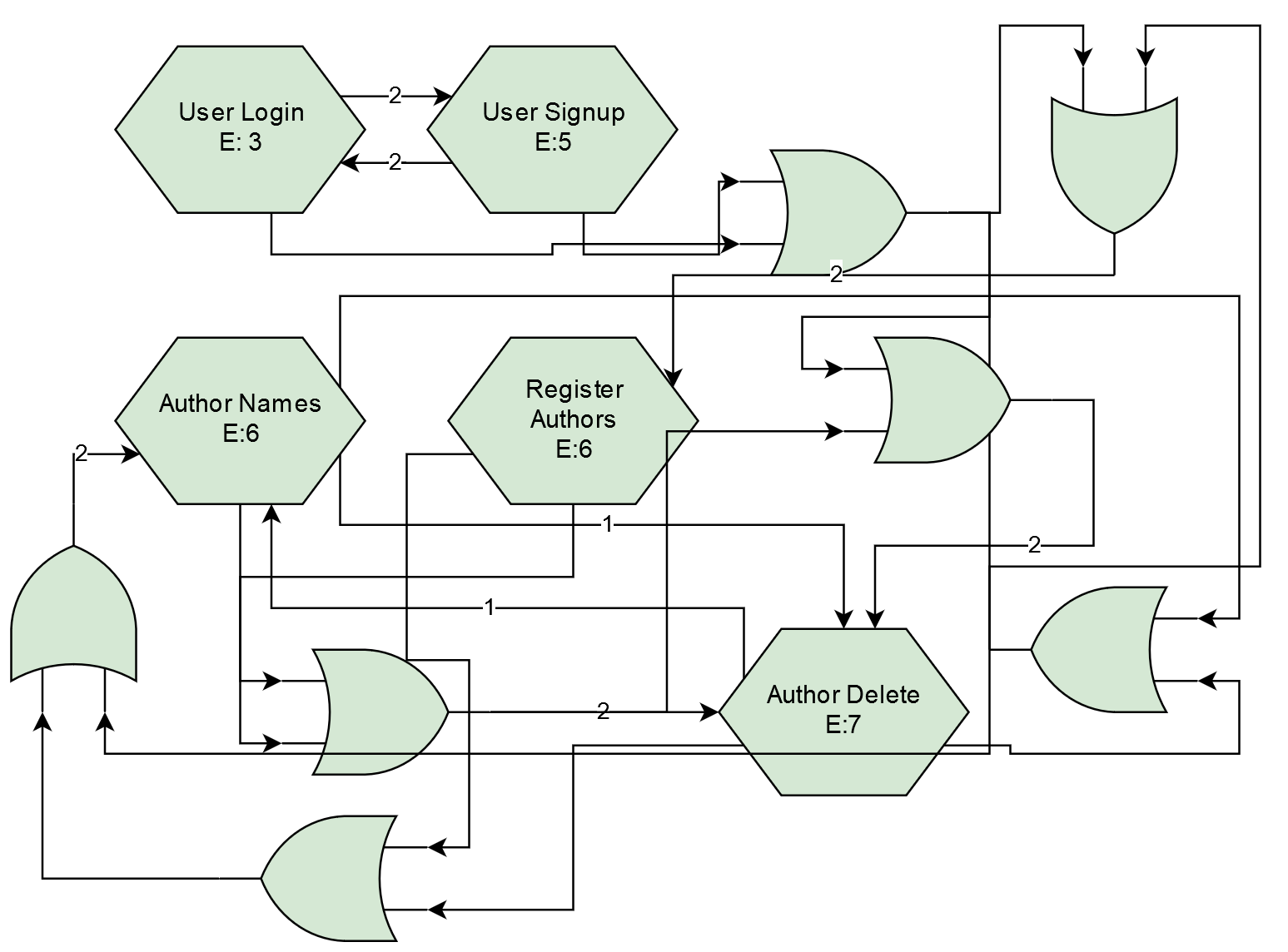 User Login: 1-3User Signup: 3-5Author Names: 1-6Author Delete: 2-7Register Authors: 2-6